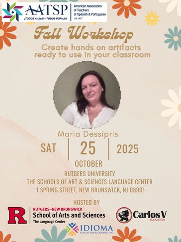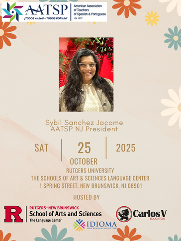 We are excited to present our programs at Carlos V Education 2025 / 2026 on October 25th. We are honored to be sponsoring the AATSP NJ Chapter at Rutgers University, where we will be launching our latest offers, including our Immersion Experiences, Educational Tours, Study Abroad, Professional Development courses, Summer Programs, and more.