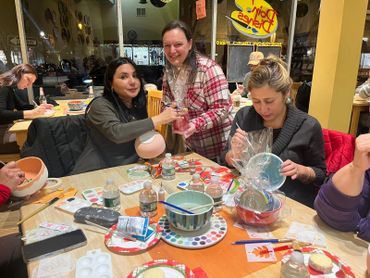 The AATSP-NJ chapter board and members gathered on Jan. 10th, 2025 for a fun social event at Doin' Dishes, Montclair.